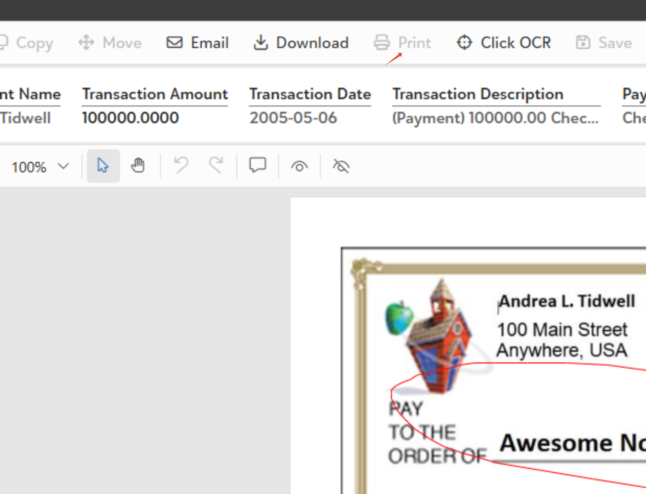 - Click the Print icon located in the Top-right Corner/Main Toolbar