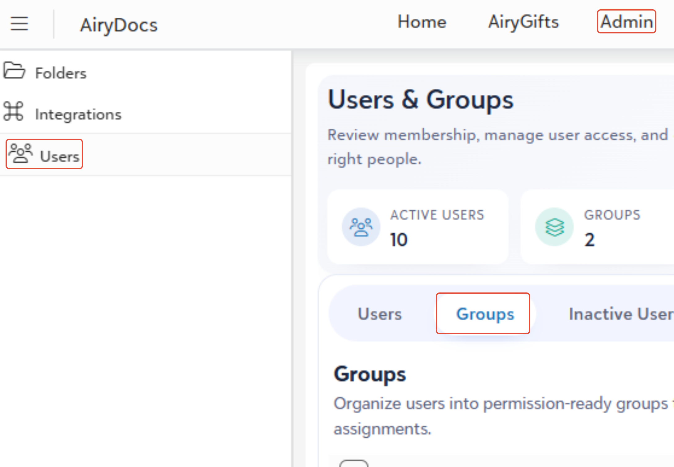 Organize users into permission-ready groups to simplify access assignments.