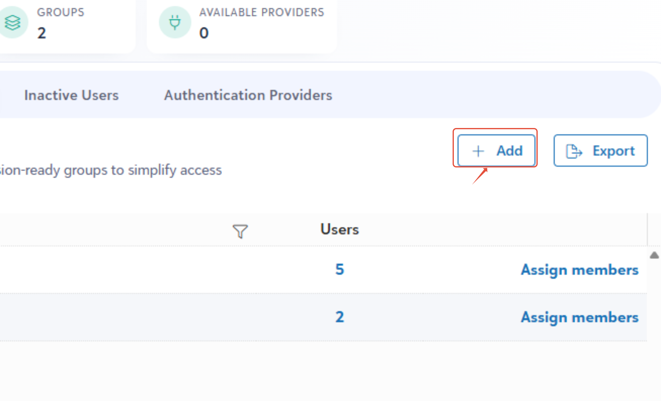 - From the Groups dashboard, click the + Add button.
