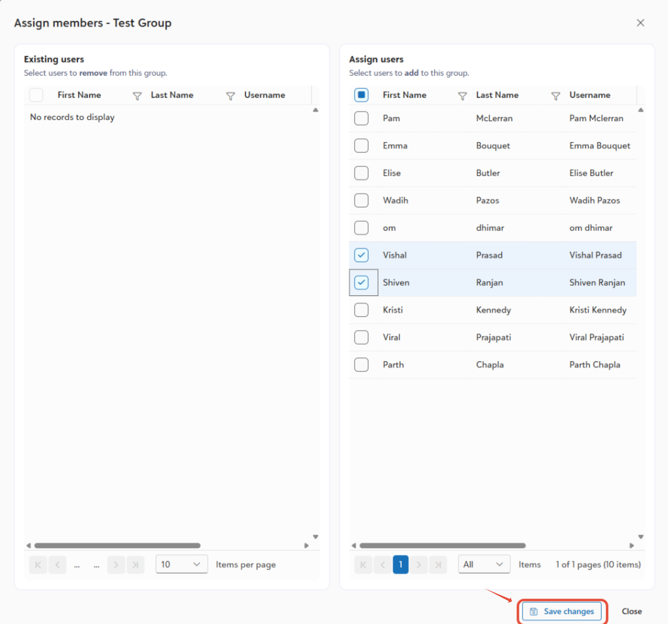 - Click Save changes to update the group membership.